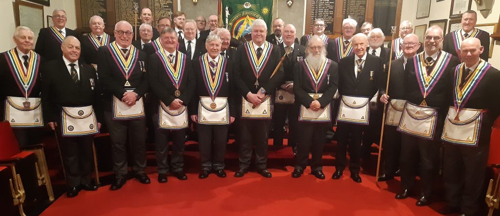 A particularly memorable evening took place on 15th March 2024 when Farne Lodge of RAM No. 1540 celebrated the 25th Anniversary of it’s Consecration on 20th March 1999. To mark this special occasion the Provincial Grand Master, R. W. Bro. Ray Walton, supported by the DPGM and APGM, led the Provincial Team to join in the celebration. There was an excellent turn out from the Team with over 20 Officers being in attendance. They received a wonderful reception from the Worshipful Commander and the other members of the Lodge who were present.