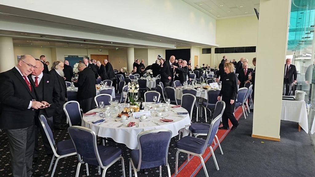 We and the rest of the Distinguished Guests, which included 21 Provincial Grand Masters, received a very warm welcome from their PGM R. W. Bro. Bob Clancy and the members of the Province. There then followed a very enjoyable Provincial Meeting in which, after the usual Provincial business, V. W. Bro. Paul Barham was re-appointed as DPGM and a new APGM was appointed and installed in the person of W. Bro. Geoffrey Nicholson. The PGM then appointed the rest of his officers for 2024/2025.